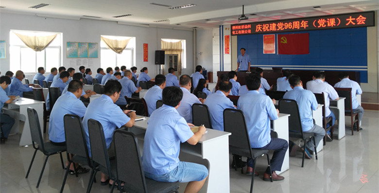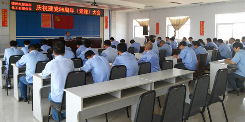 德州虹橋染料化工有限公司三個(gè)支部的全體黨員于2017年7月8日上午9點(diǎn)在公司辦公樓4樓黨員活動室進(jìn)行了“慶祝建黨96周年(黨課)大會”學(xué)習(xí)。這是今年以來3個(gè)支部全體黨員第一次集體學(xué)習(xí)。黨課開始前,全體黨員站在黨旗下,莊嚴(yán)的重溫入黨誓詞(視頻播放)。本次黨課學(xué)習(xí),由公司董事長黨總書記吳高樓主持,在紀(jì)念我黨建黨96周年之際,公司黨總支委員總經(jīng)理申書信同志以“化工行業(yè)安全”為主題,講了德州虹橋染料化工有限公司當(dāng)前面臨的生產(chǎn)安全環(huán)境和實(shí)際困難,用近期周邊其他化工單位發(fā)生的安全事故,聲情并茂,娓娓道來,為黨員們敲響安全的警鐘。黨員們對安全生產(chǎn)的認(rèn)識又提高了一個(gè)層次。吳總要求黨員們要積極發(fā)揮黨員的先鋒模范作用,以實(shí)際行動為榜樣,帶動德州虹橋所有職工牢記安全生產(chǎn),人人有責(zé)。。
